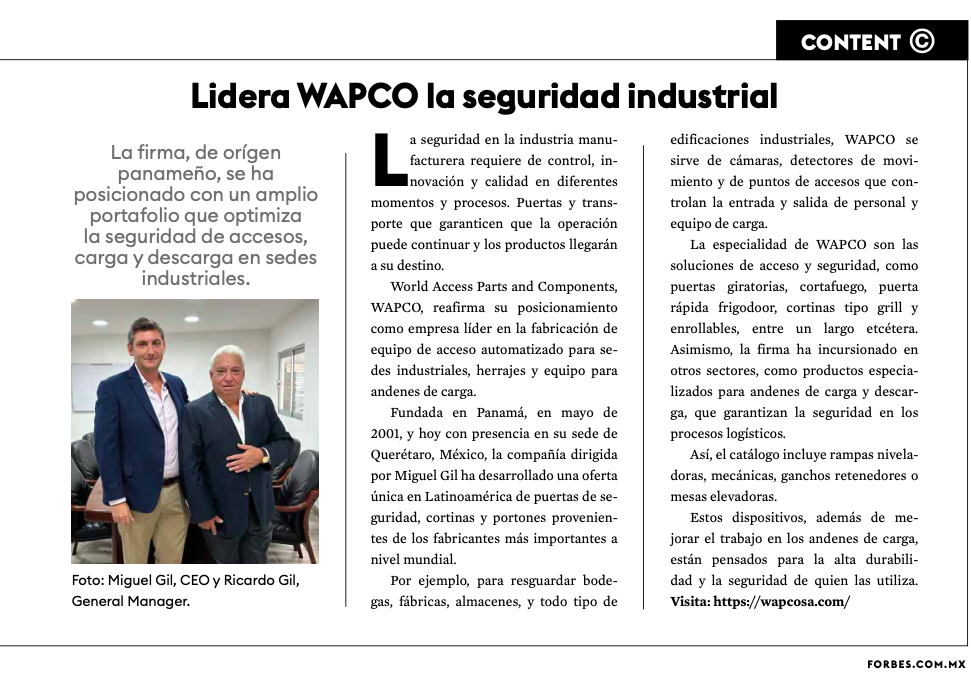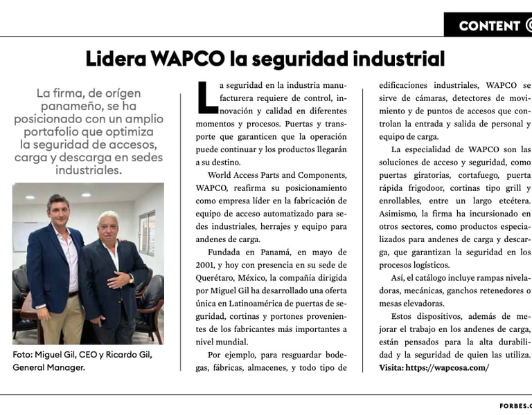 No solo vendemos soluciones, definimos el estándar global de protección. Este reconocimiento de Forbes reafirma nuestra misión: innovar hoy para garantizar un mañana seguro en cada sector productivo.